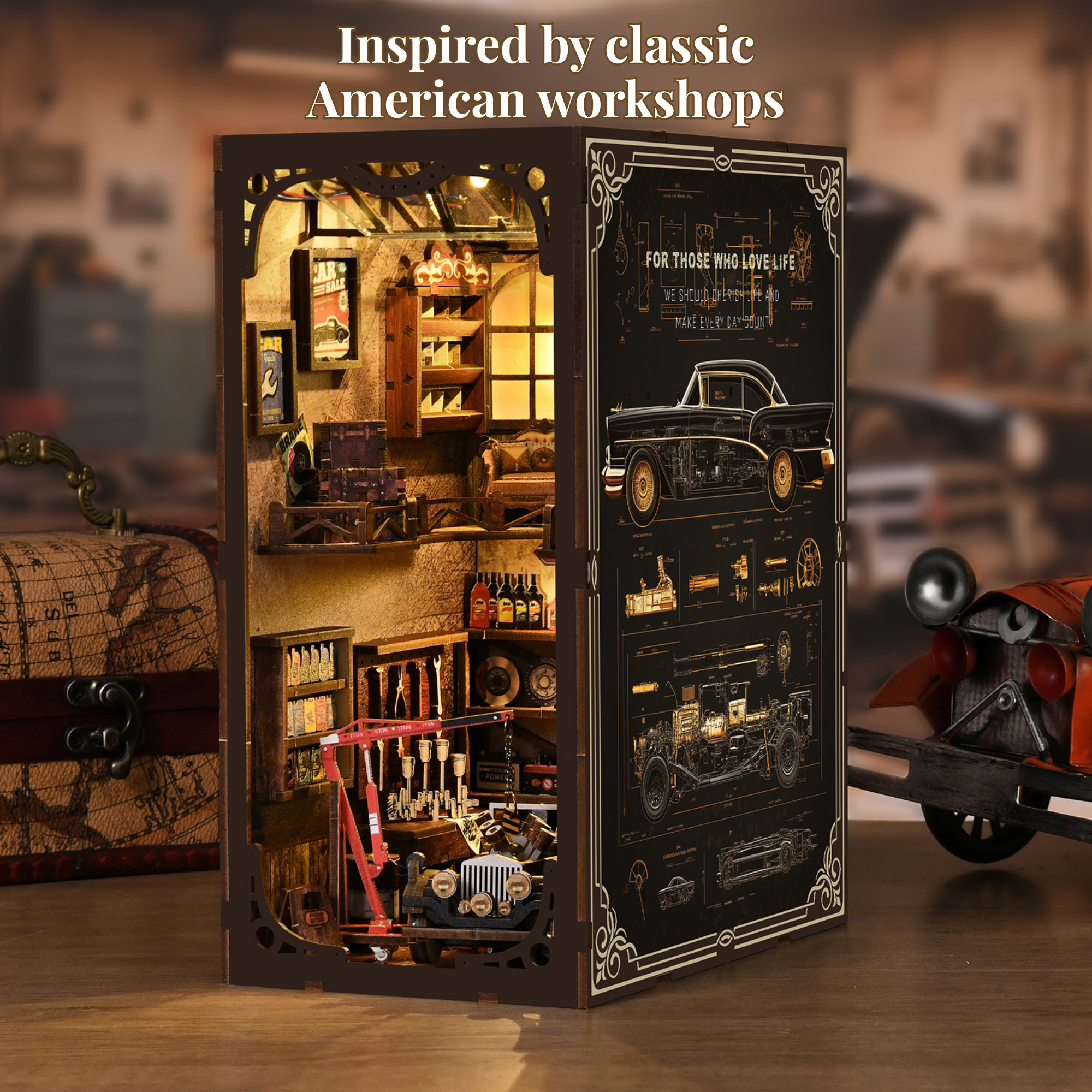 This Book Nook kits is Inspired by classic American workshop